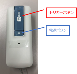①Bluetoothで自動接続してしまっていることが考えられます。 ②トリガーボタン(長いほうのボタン)を押しながら電源ボタンを5秒間長押しすると、 ロングビープが鳴りペアリングが解除されます。