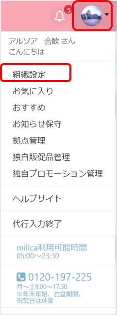 組織情報内で登録したメールアドレスは、millca内の各種帳票に印字されます。