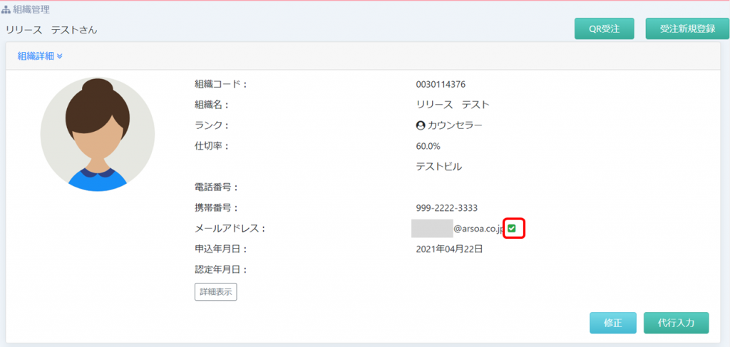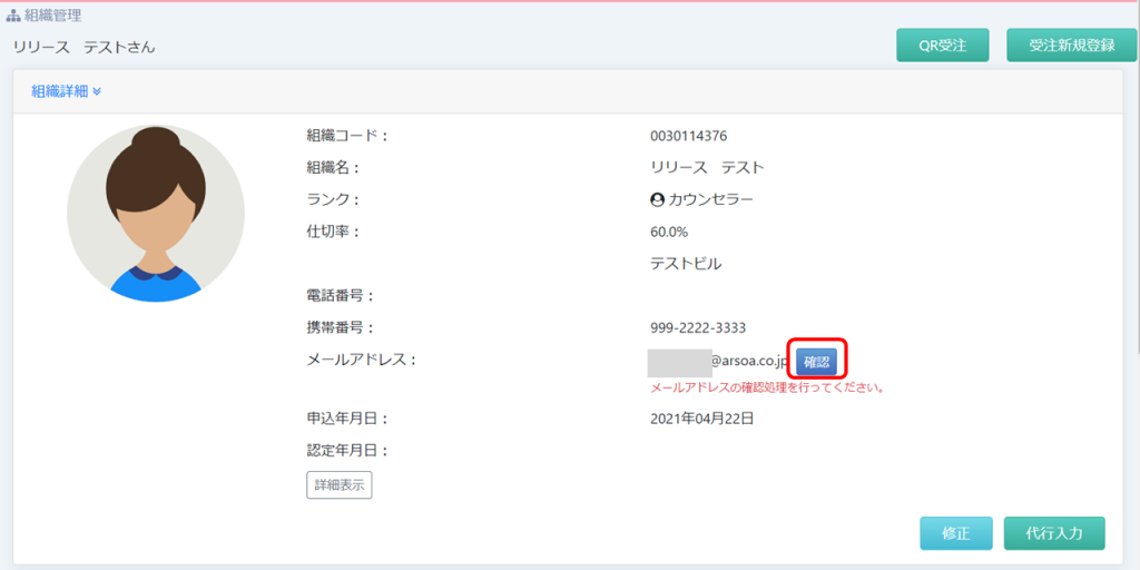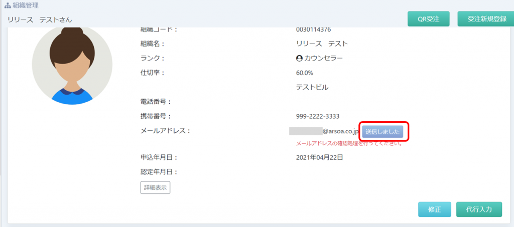 ⑥ 直上組織の画面では、BC様のメールアドレス横に「✔」が入り、確認済みであることが分かります。