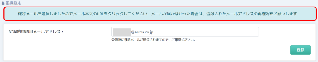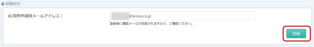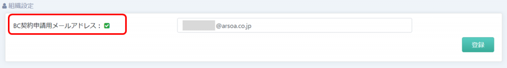 ⑥ 組織設定内「BC契約申請用メールアドレス」内に「✔」が表示されましたら