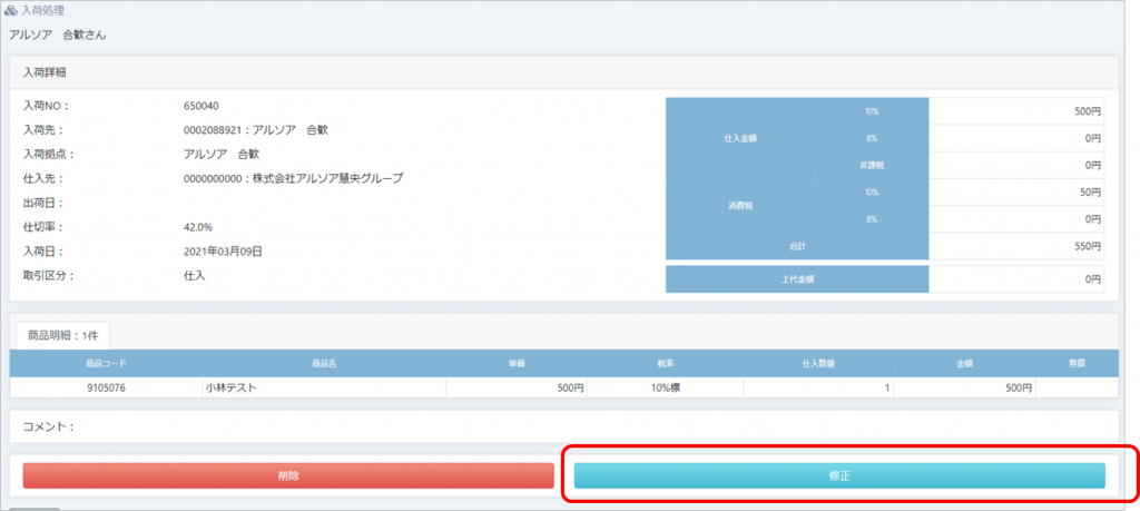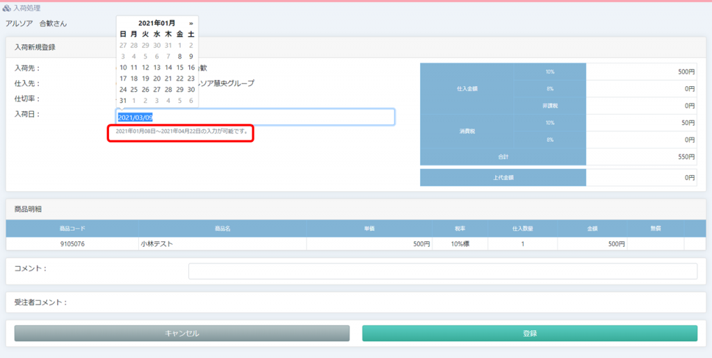 受注締日を過ぎた入荷済伝票について、入荷日修正ができなくなっておりました。入荷日の編集(過去60日以内の日付指定)ができるように修正済みです。