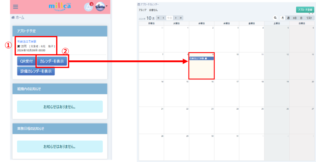 カレンダー表示もされますので、忘れずに予定管理できます。