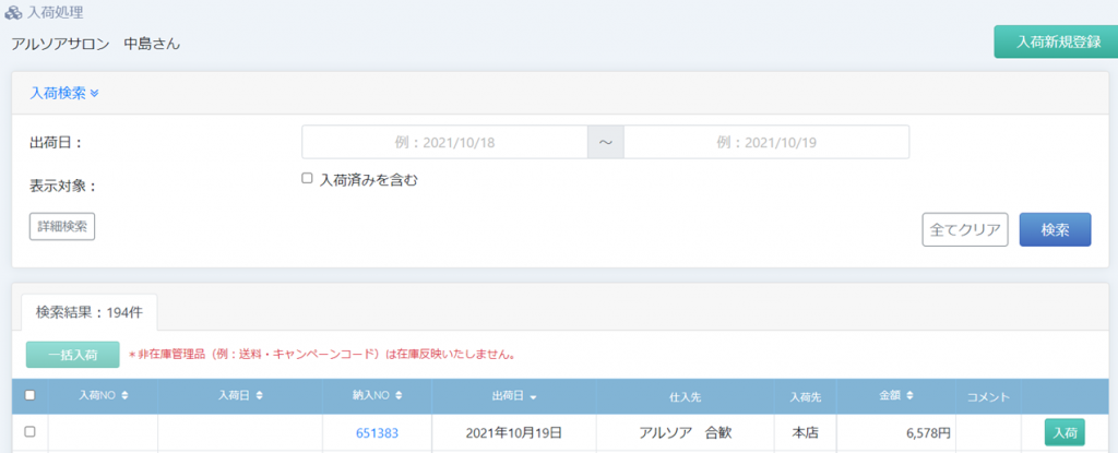 ※入荷画面に、実際にはまだお届けしていない製品が表示されますので