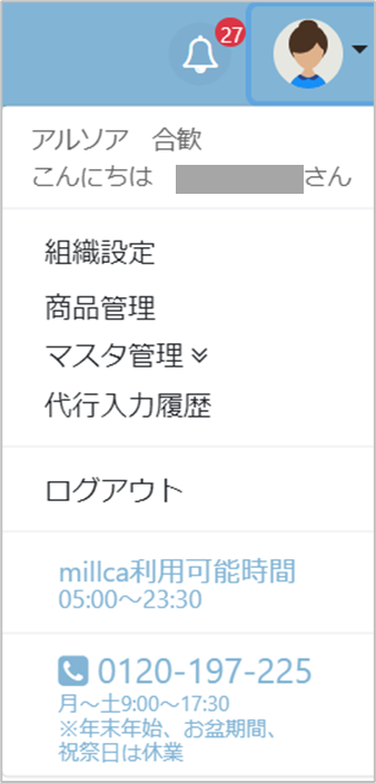 ホームリリースノート【機能修正】millcaマスタ管理メニューの表示を整理しました(2022/1/24リリース) 2022/01/24 2024/08/21millcaの右上アイコンより、ご自身のマスタ変更を頂けますがメニューを分かり易く整理いたしました。※ランクにより、表示機能は異なります(販社様旧画面)(販社様新画面)マスタ管理がプルダウン選択できるようになっています。