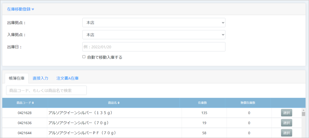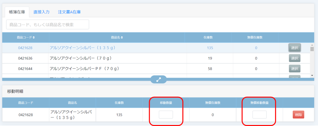有償在庫、無償在庫ともに在庫移動ができるように修正しております。