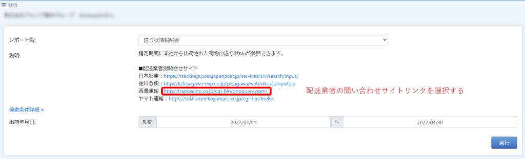 ⑤ 各配送業者の問合せサイトで、送り状NOを貼り付けして検索を行います。