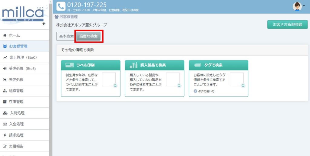[お客様管理] の検索画面に、[高度な検索]タブを追加しました。