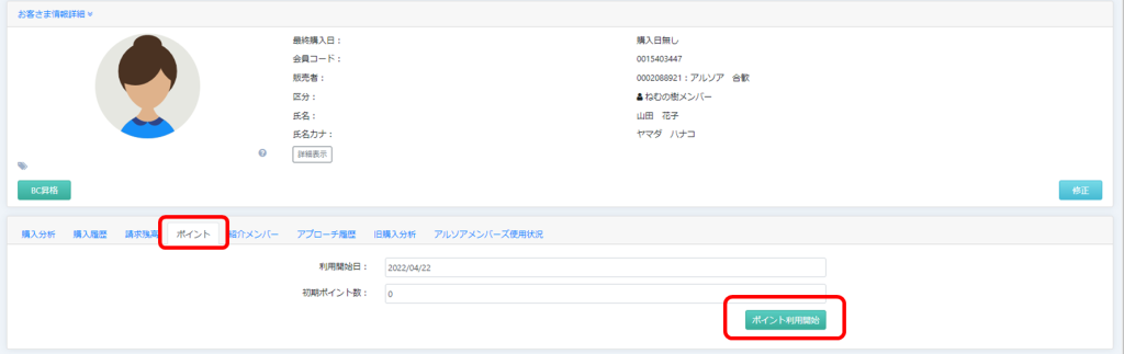 ③同様に、紹介者の方もポイント利用開始となっていることを確認します。