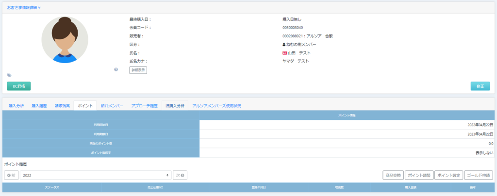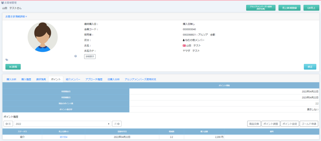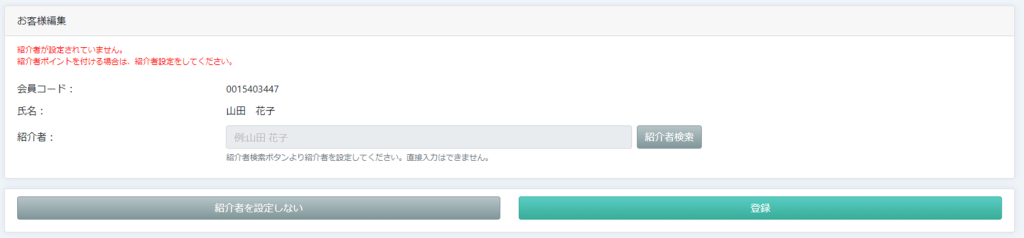 ⑤会員の新規登録時に紹介者が選択されていない場合は、初回売上入力後に