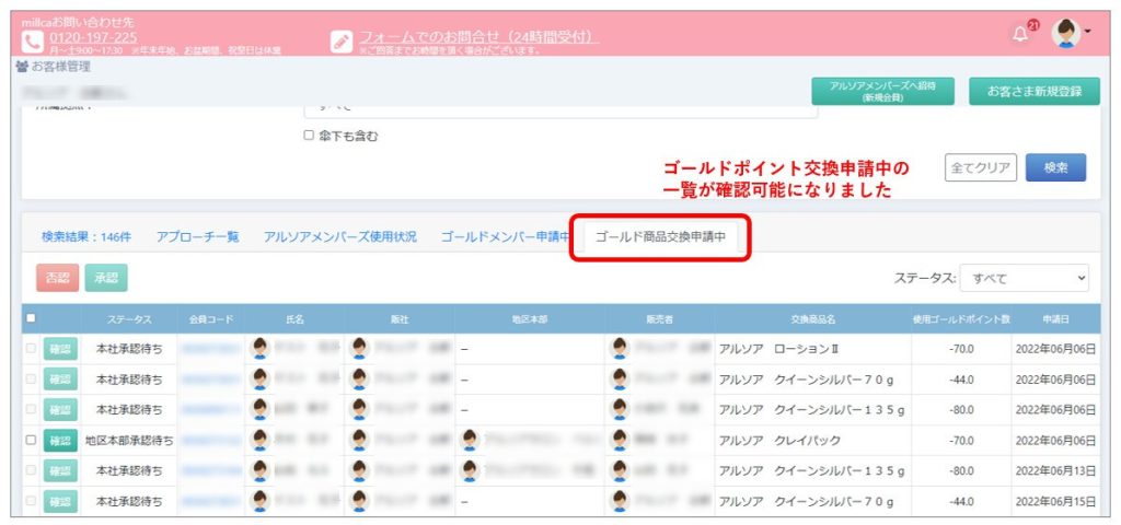 ホームメンバーポイント・ゴールドポイント【リリース】ゴールドポイント交換申請機能をリリースしました(2022/6/27リリース) 2022/06/27 2024/08/21ポイント交換申請機能で、ゴールドポイントを使用して商品交換申請できるようになりました。また、ゴールドポイント交換申請中の一覧を確認できるようになりました。ここから、ゴールドポイント交換申請の承認・否認が可能です。