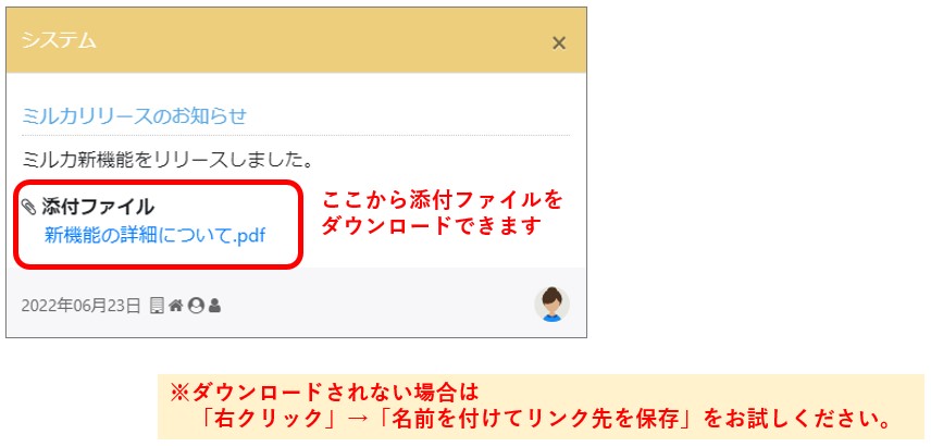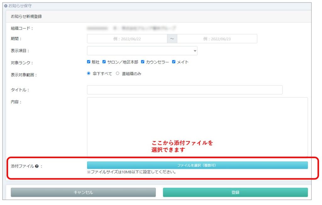 「お知らせ」に添付ファイルを追加することができるようになりました。
