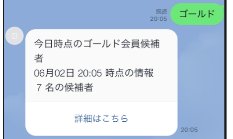 トーク画面で「ゴールド」とご入力いただけると、結果が表示されます。