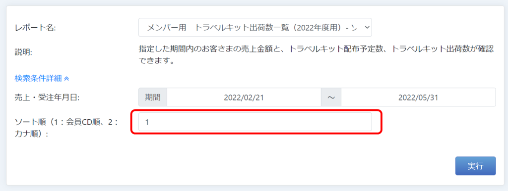 検索条件指定「ソート順」にて、以下のとおりご指定ください。