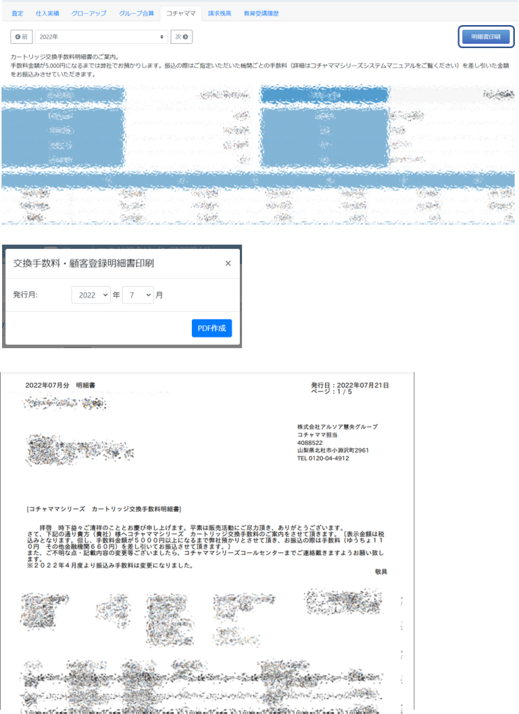 ホーム諸手当(販売奨励金、資格維持)【機能追加】コチャママ BM明細書印刷ができるようになりました。(2022/07/25リリース) 2022/07/25 2024/08/21現在、millca画面上でカートリッジ交換手数料金額が確認できましたが、明細書印刷も可能になりました。