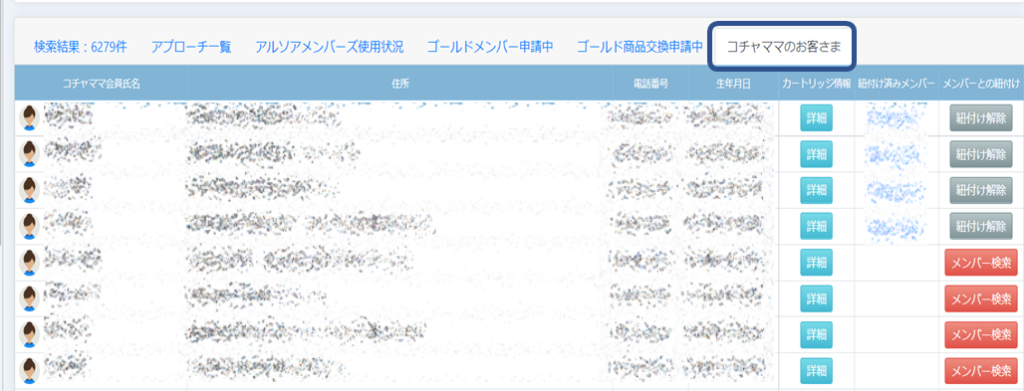 メニュー>お客さま管理>コチャママのお客様タブをクリックします。