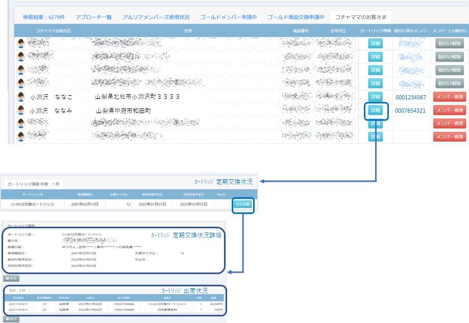 コチャママのお客様の情報とメンバー情報をつないでいただくことでコールセンターにお問合せいただくことなく、いつでも情報を確認し、お客様へのフォローにご活用いただけます。