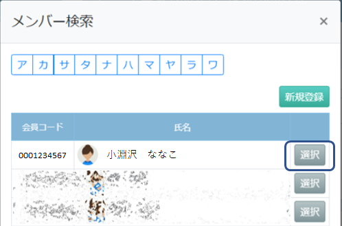 ⑤メンバー検索画面に該当者がいなかった場合は、新規登録ボタンをタップすると