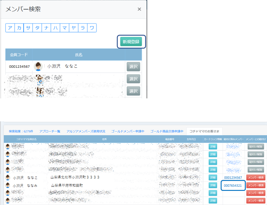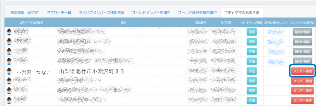 ②メンバー情報とコチャママお客様情報をつなぎます。