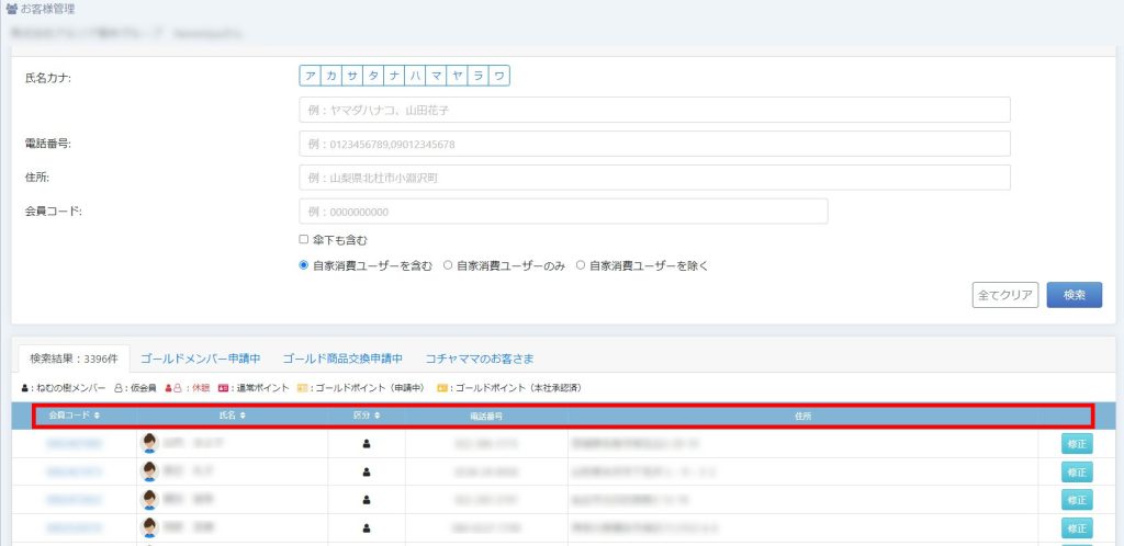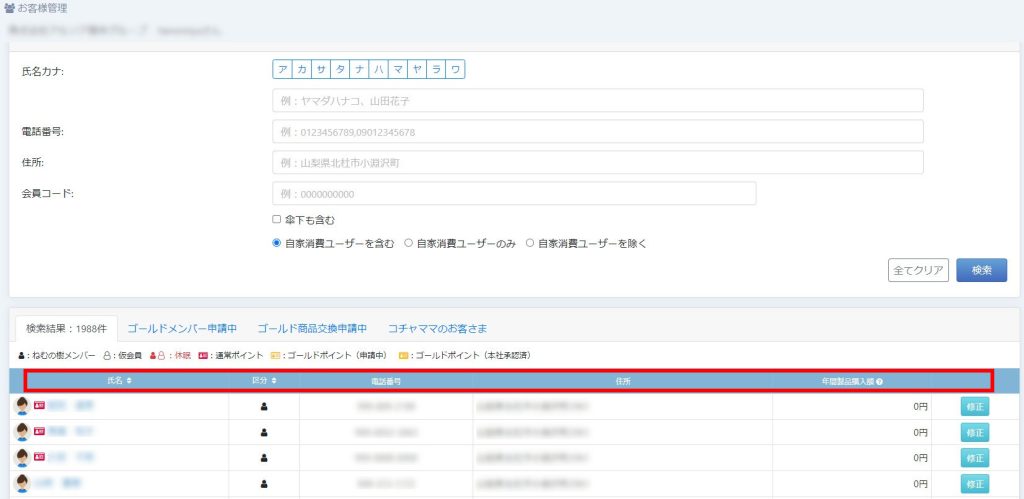 ※会員コードを非表示とし、年間購入額を新たに追加しました。