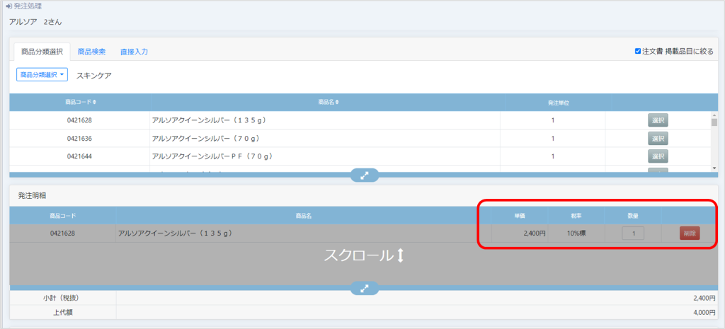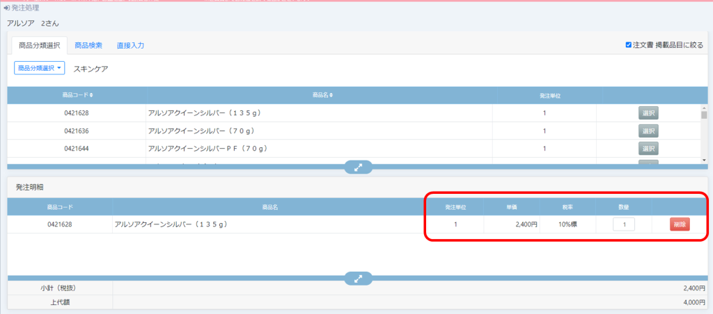 ホーム発注【修正】発注画面の「発注単位」を削除しました(2022/10/31リリース) 2022/10/31 2024/08/26発注登録処理時、発注明細部に「数量」と「発注単位」が表示されておりどちらが発注数量なのか、わかり難いとのお声がありました。発注明細部に表示されていた発注単位を削除し、見やすい表示となるように修正しました。(修正前)(修正後)