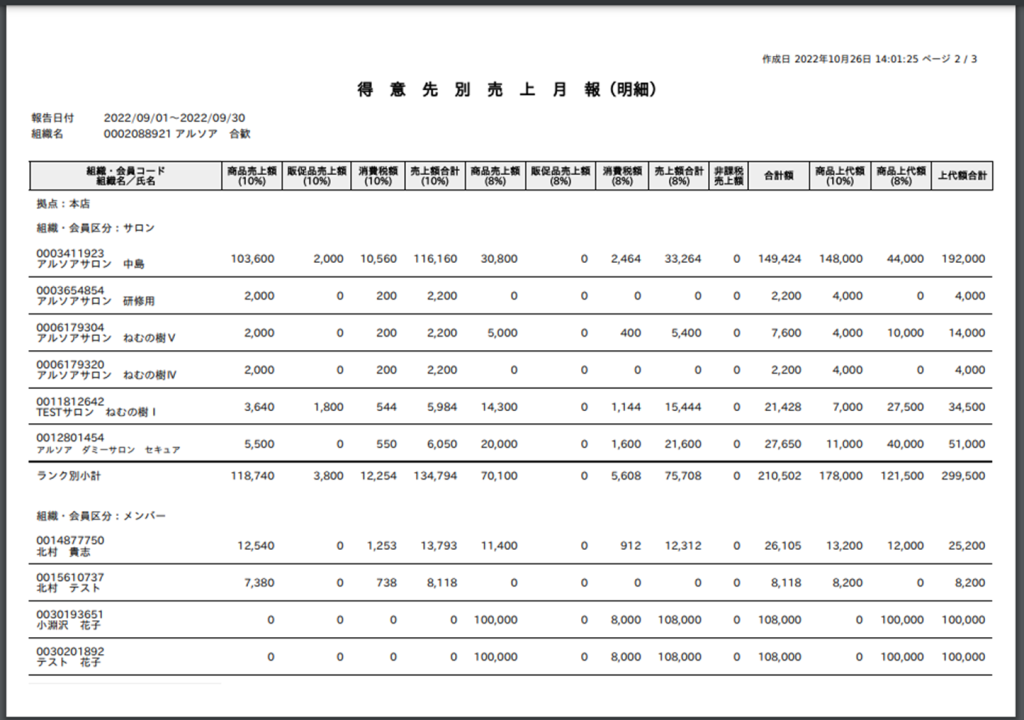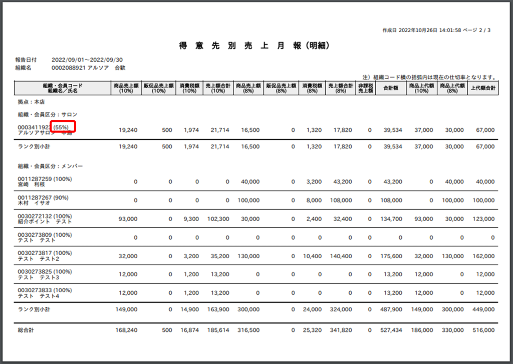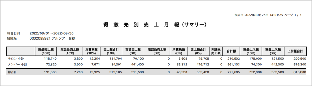 ※仕切率および、計算結果は、帳票出力時点のものになります。報告期間中に仕切率変更があった場合はサマリーページの金額と差異が出ますのでご注意ください。