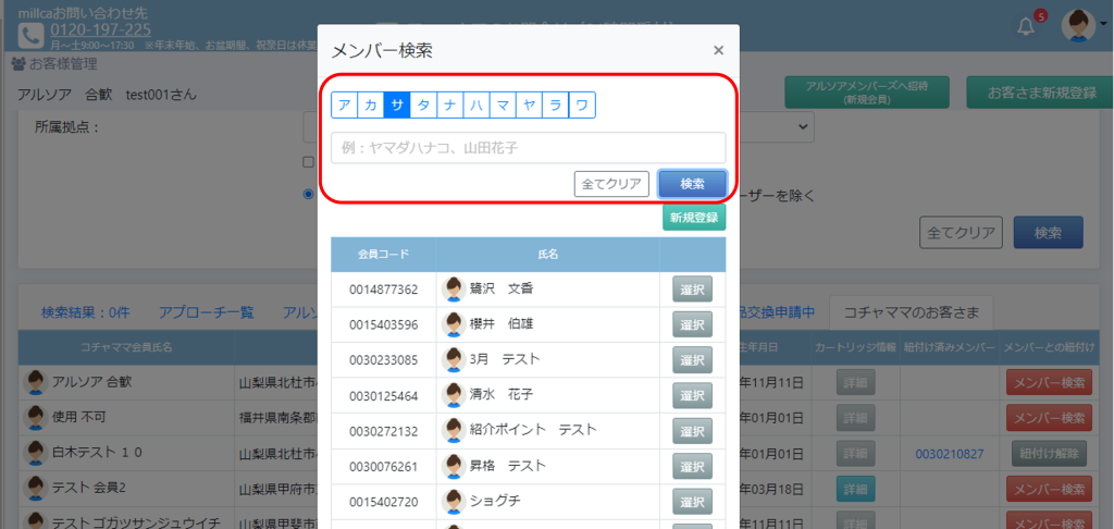 ホームお客さま・お客さま候補の管理【要望】コチャママ会員紐づけ 紐づけを行うメンバーをお名前検索ができるようにしました(2022/11/28リリース) 2022/11/28 2024/08/27ホーム>お客さま管理>コチャママ>コチャママ紐づけコチャママユーザーとお客さまの紐づけを行う際、お名前の絞り込みができるよう、検索画面を追加しました。