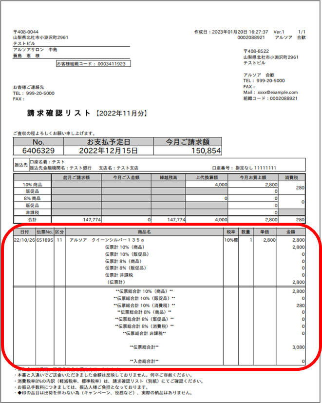 ③ 明細行が含まれた請求書を出力されます。