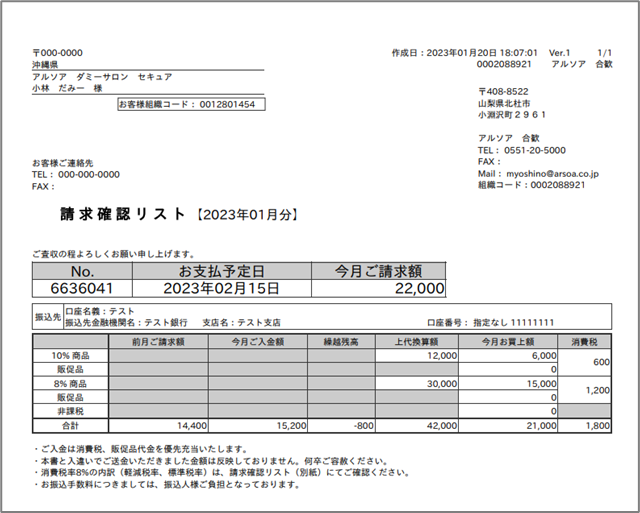 請求確認リストは傘下へ送付し、請求確認リスト(別紙)は販売者が控えとして、