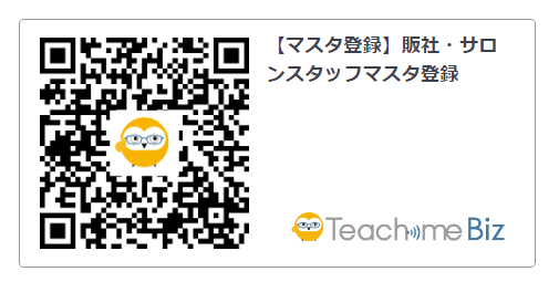 ホームマニュアル【簡単マニュアル】販社・サロンスタッフマスタ登録方法(2023/4/25UP) 2023/04/25 2024/08/29販社、またはサロンスタッフの登録方法マニュアルです。【マスタ登録】販社・サロンスタッフマスタ登録https://teachme.jp/131668/manuals/21939748スマートフォンでQRコードを読み込むと、 マニュアルにすばやくアクセスできます