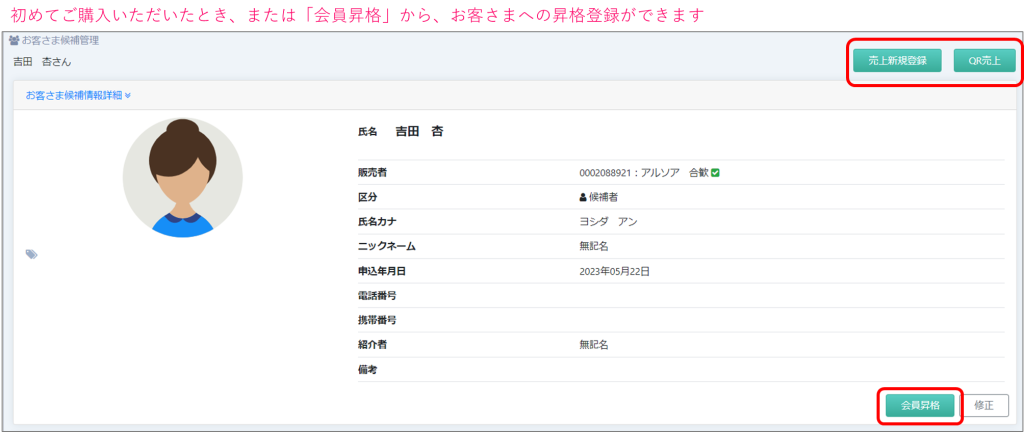 お客さまへの昇格処理
