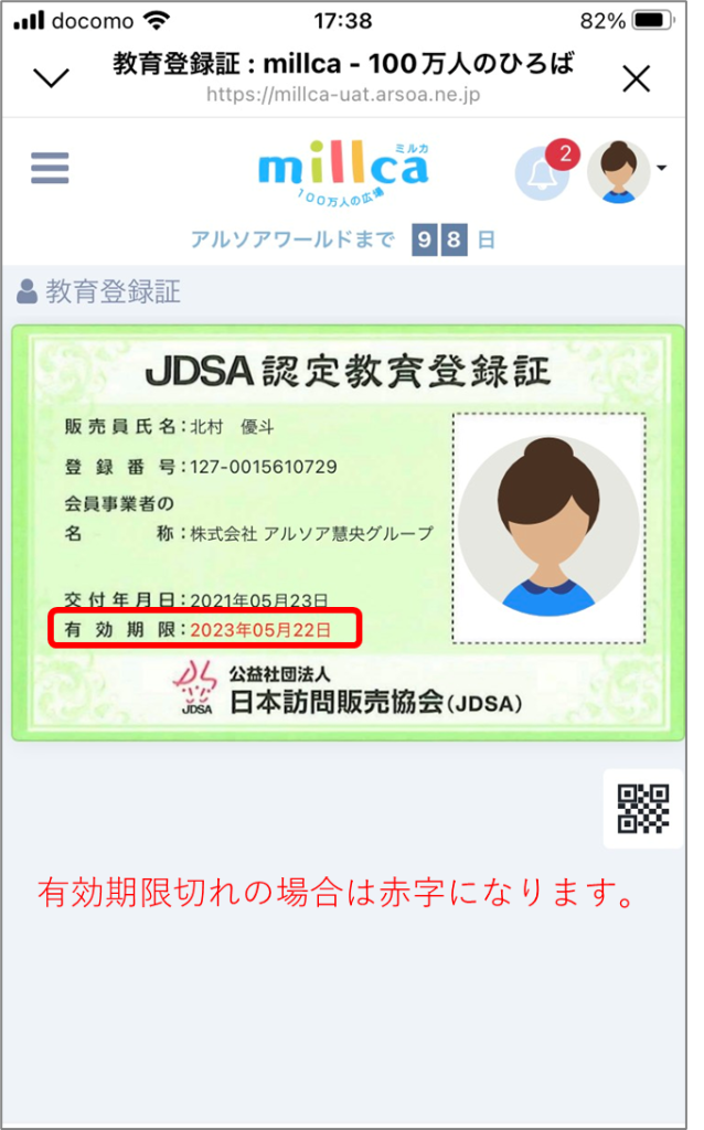 教育登録証の期限が切れている場合は赤字で表記されますので