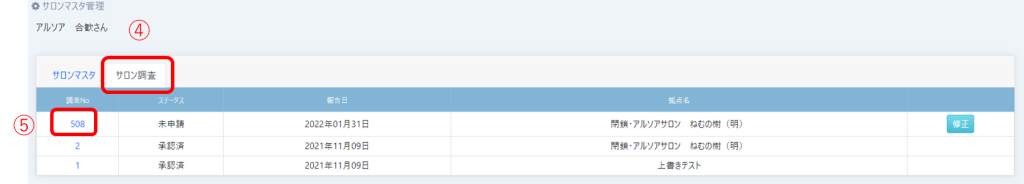 なお、サロン調査機能 マニュアルはこちらをご参照ください。