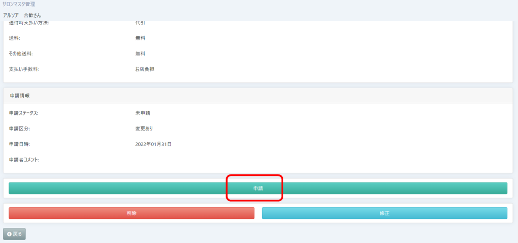 【修正前】 サロンマスタ承認は「申請」(本社への申請)のみとなっていました