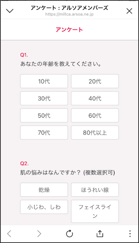 お客さまが、アルソアメンバーズより過去にアンケート登録されている場合は