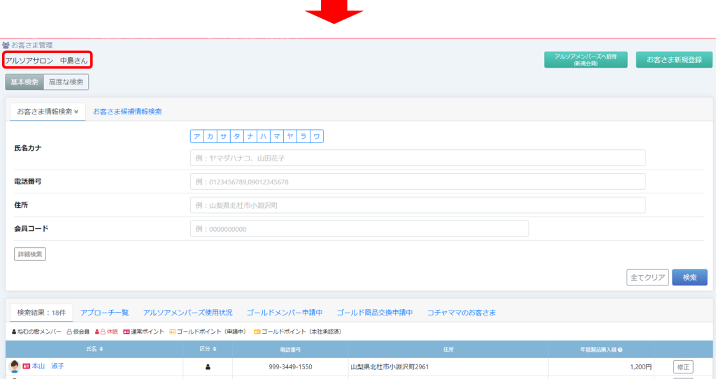 傘下サロンアルソア中島に、代行ログインしたときに、同じ条件を引き継いでしまっていました。