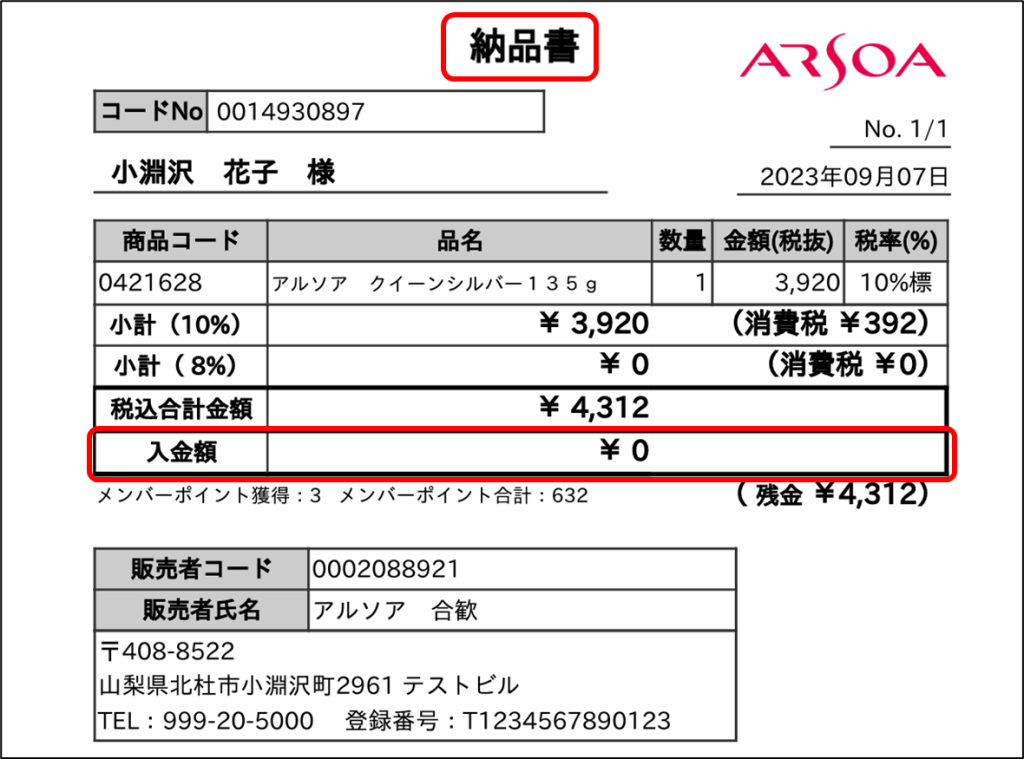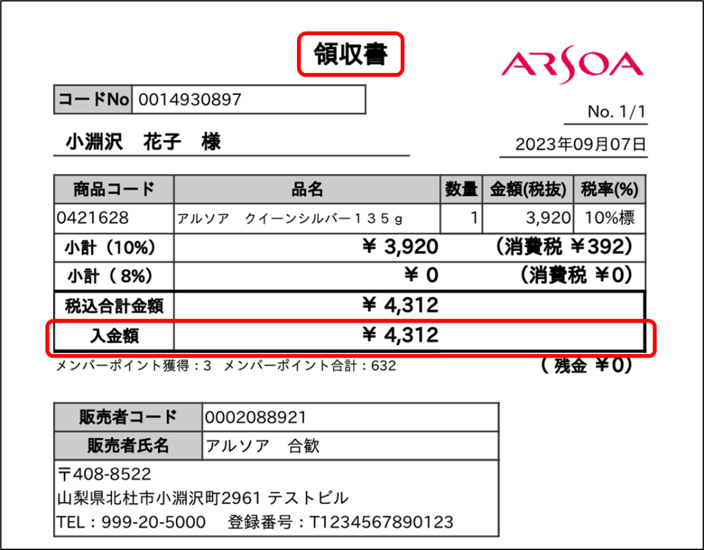 入金額が1円以上の場合 ⇒「領収証」 *満額入金ではなく一部入金でも適用されます