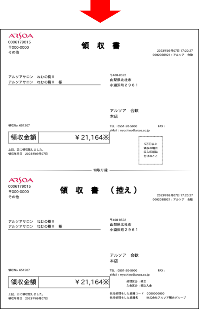 修正前:紙面での領収書発行のみとなっておりました。