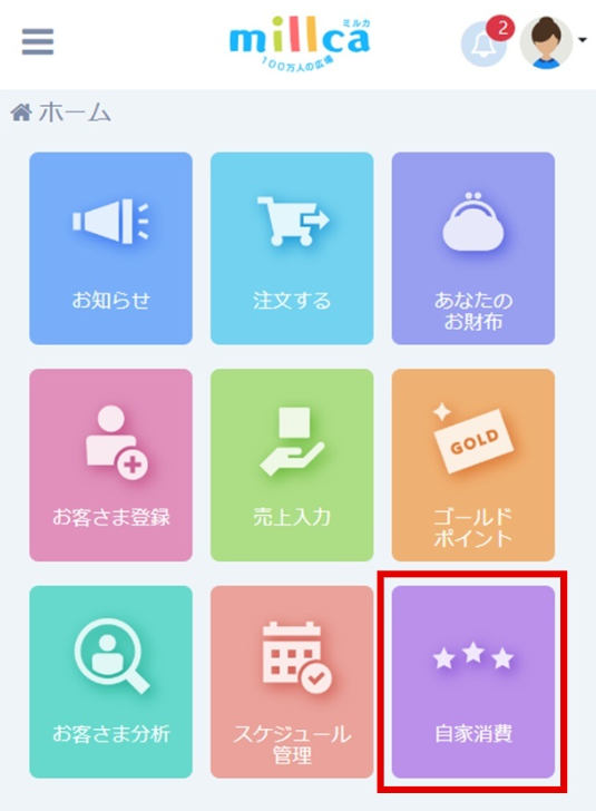 BC簡易画面の「自家消費」ボタンをご利用ください