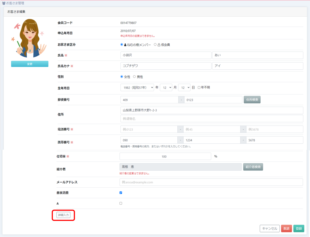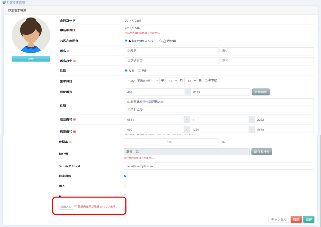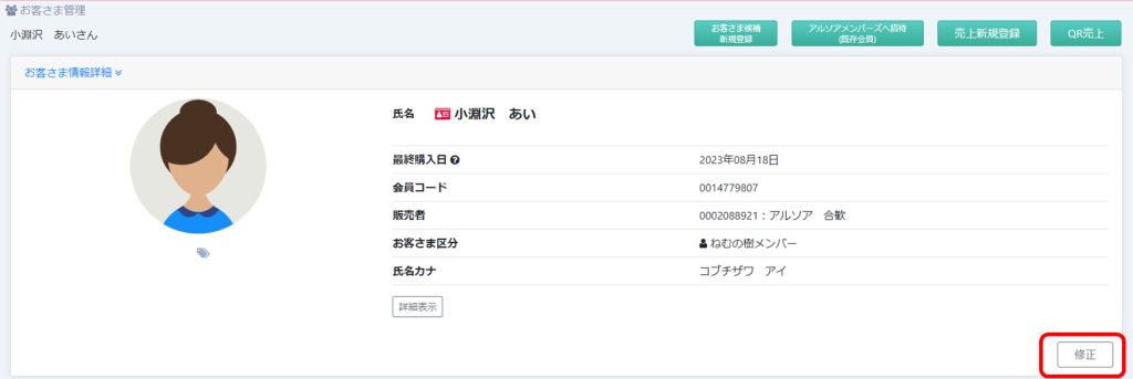【対象画面】お客さま管理>お客さま詳細情報>「修正」
