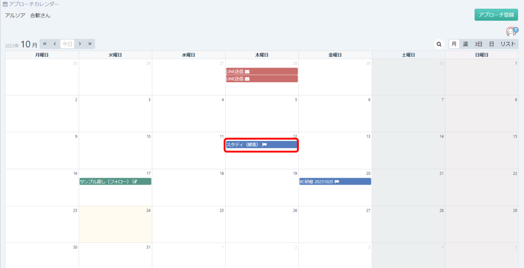 お客様管理>アプローチ一覧タブ>アプローチ予定詳細(タイトルを選択)