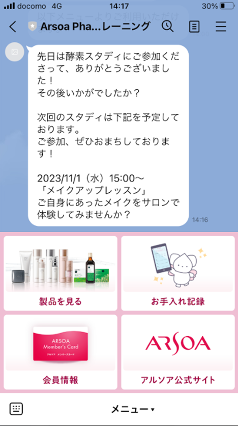 ⑤お客様のメンバーズ連携画面、トーク内に該当のメッセージが送られます(即時)