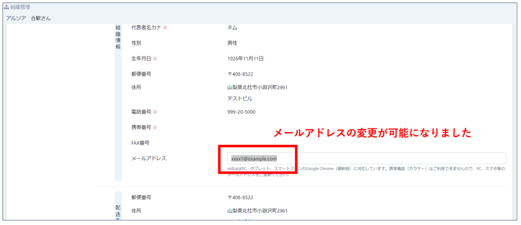 ホーム組織管理【機能改善】組織管理画面において自身のメールアドレスを変更できるようになりました(2023/11/27リリース) 2023/11/24 2024/08/23組織管理>組織詳細組織詳細画面にて自身のメールアドレスを変更できるようになりました。