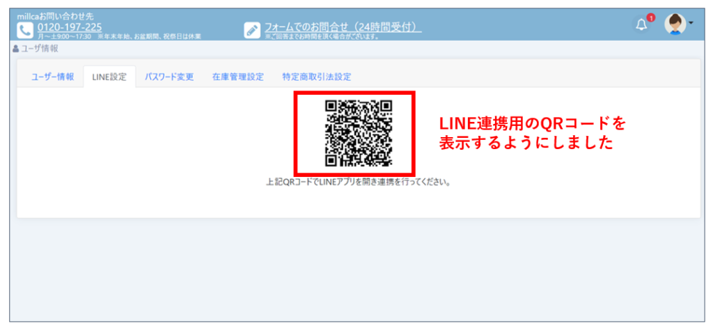 ホームログイン・LINE連携【機能改善】組織設定の中にLINE連携用のQRコードを表示するようにしました(2023/11/27リリース) 2023/11/24 2024/08/23組織設定>LINE連携タブ組織設定画面の中に、LINE連携をしていない場合は、LINE連携用のQRコードを表示するようにしました。