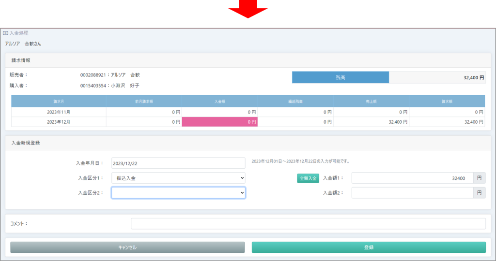 【修正後】当月度の売上に対して、当月日付で入金相殺ができるようになりました
