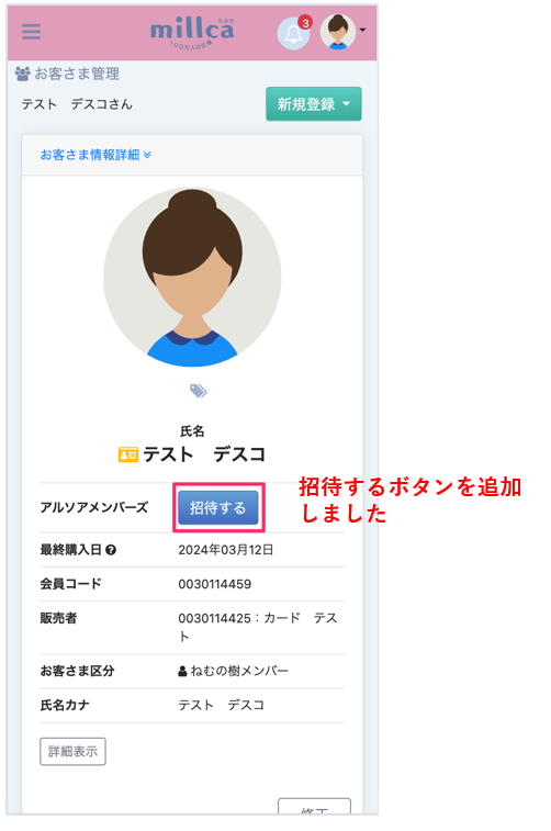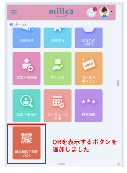 お客さま登録→お客さま管理画面に、アルソアメンバーズへの招待QRコードを表示させるボタンを追加しました。