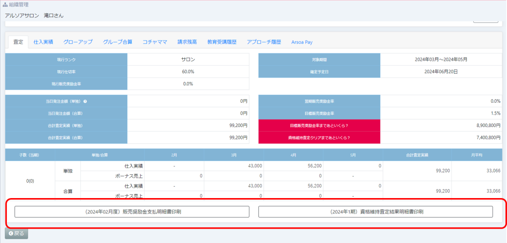 本社一次取引先様についてご自身の組織情報の査定タブ下部に表示されている