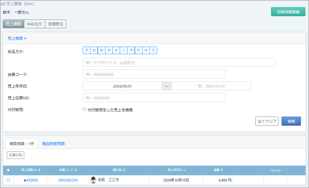 代行販売をした伝票は、売上管理(BtoC)の売上検索で