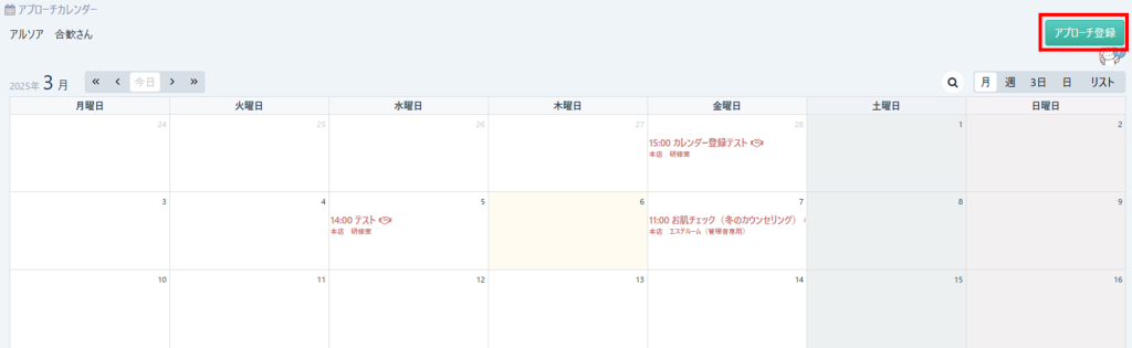 アプローチカレンダーから「アプローチ登録」ボタンを選択します