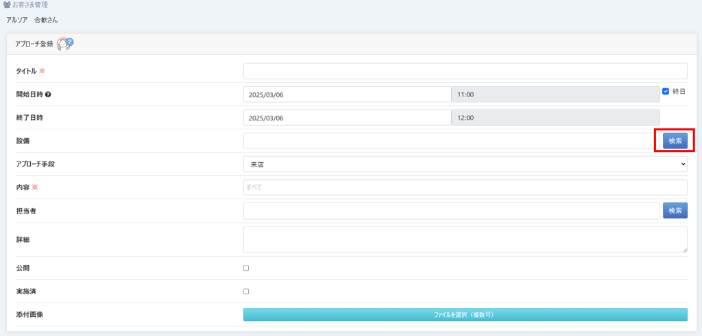 ②通常カレンダーのアプローチ登録から、アプローチと設備を同時登録できるようになりました。