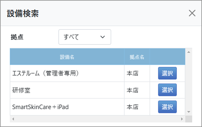 「設備」欄の「検索」ボタンを選択します